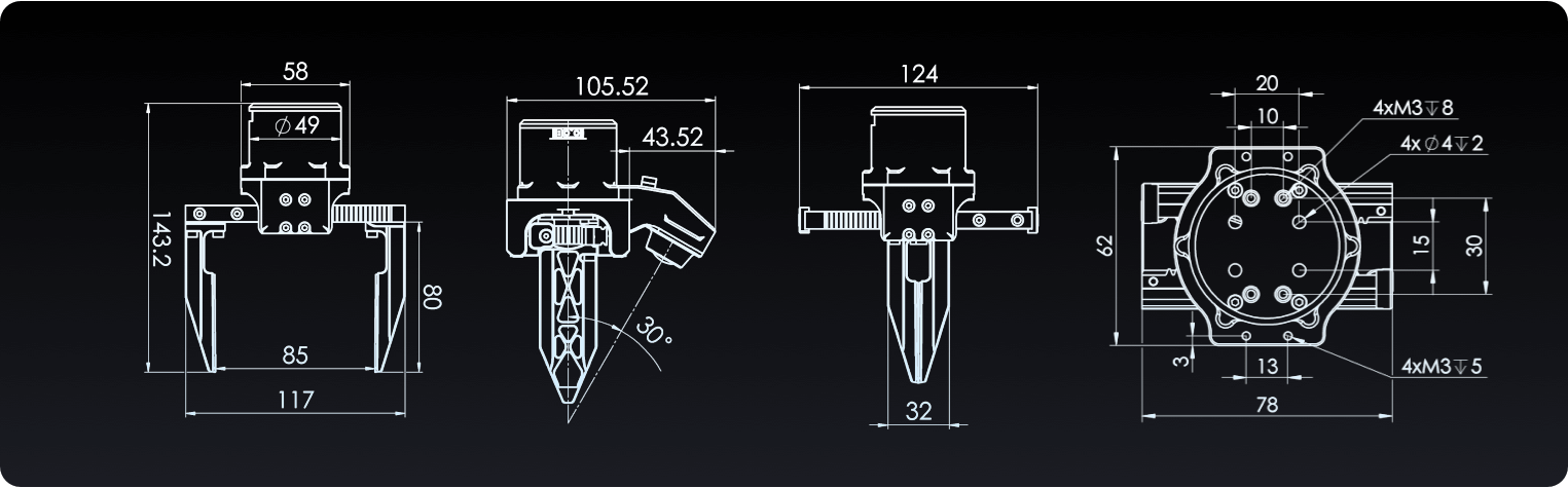 Unitree Dex1-1 to profesjonalny, precyzyjny chwytak dwupalczasty, zaprojektowany jako akcesorium do zaawansowanych robotów humanoidalnych Unitree (takich jak modele G1 czy H2), ale mogący pracować również jako samodzielne urządzenie.